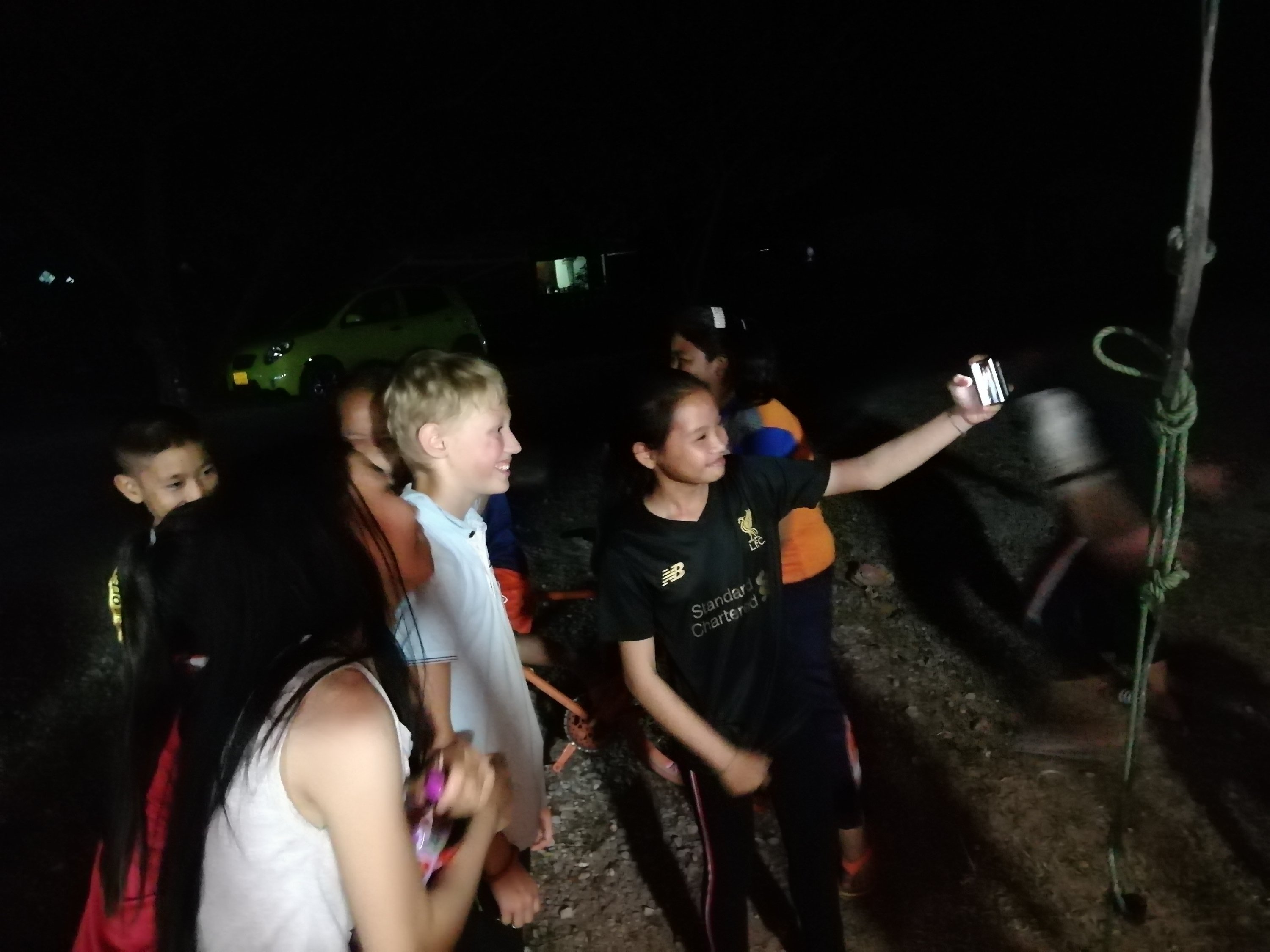 Robert og Barb ble med oss ut å spiste på restauranten vad siden av gjestehuset og etterhvert endte vi opp ved et hoppeslott som unga koste seg i sammen med mange lokale barn. Audun og Ida fikk kjenne litt på popstjernestatus da en stor jentejeng tok minst 20 selfies sammen med dem.