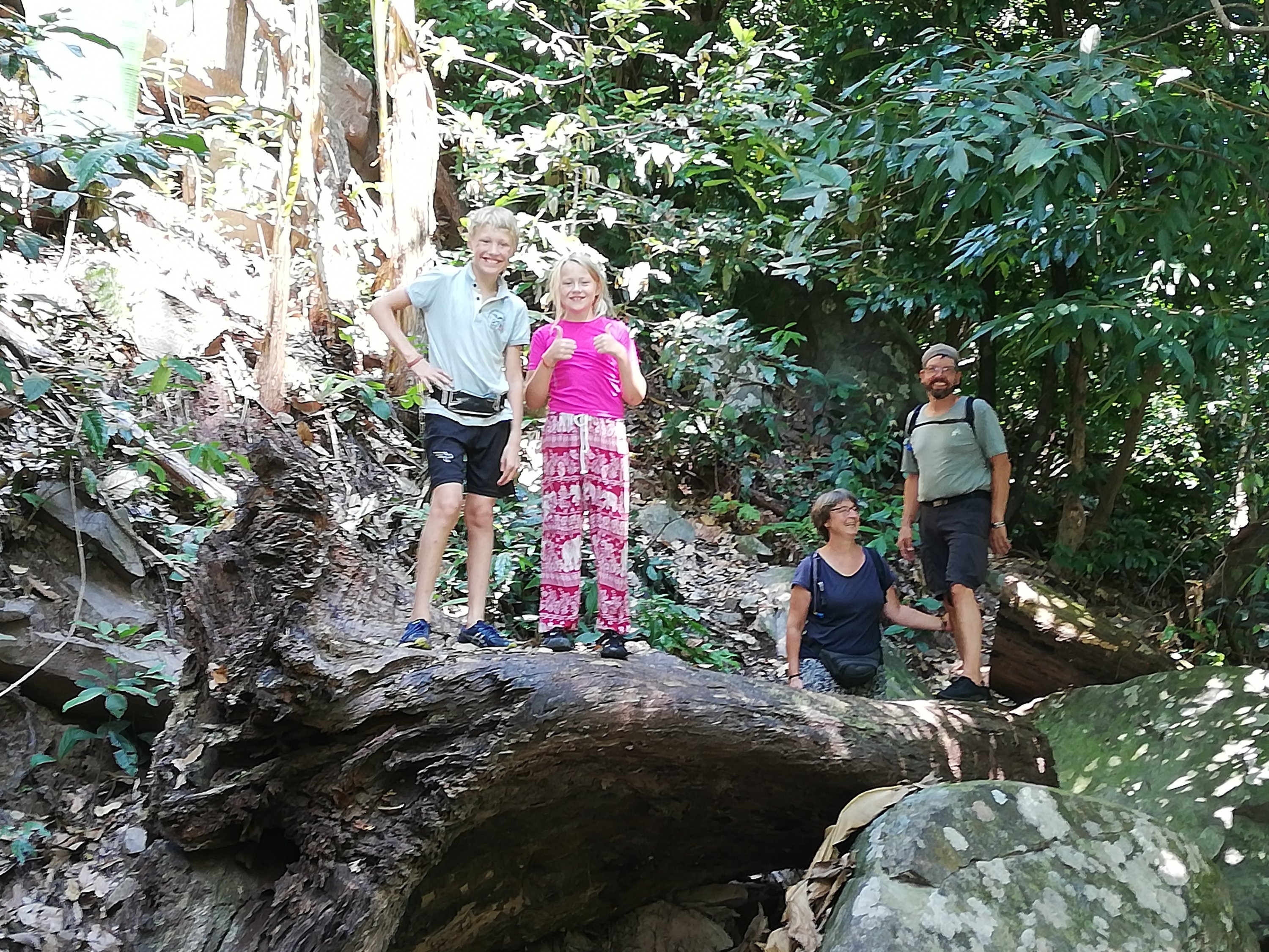 Then we walked about 2 km thru the jungle and up to the waterfall. Such a beautiful walk and a nice bath when we came to the waterfall.