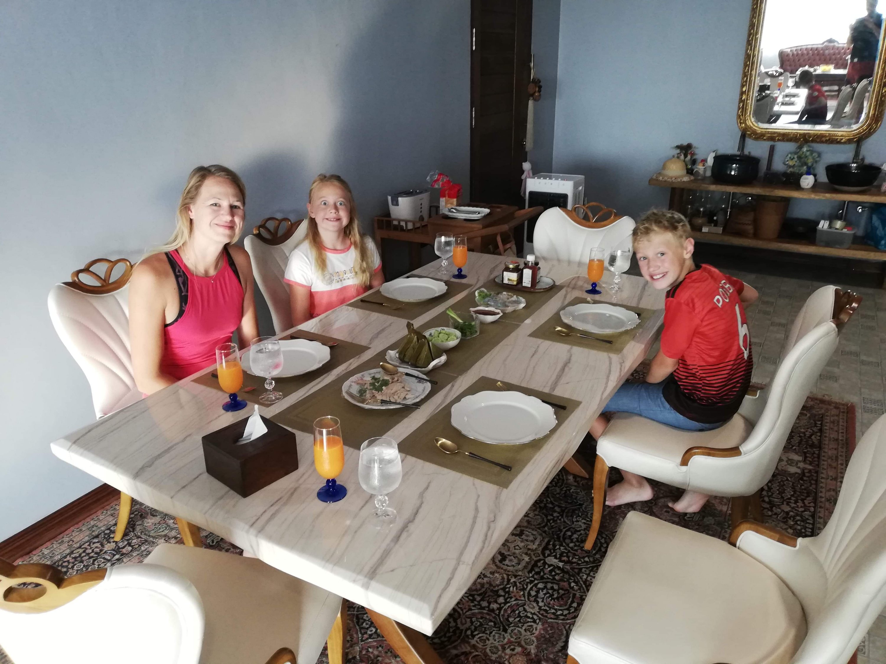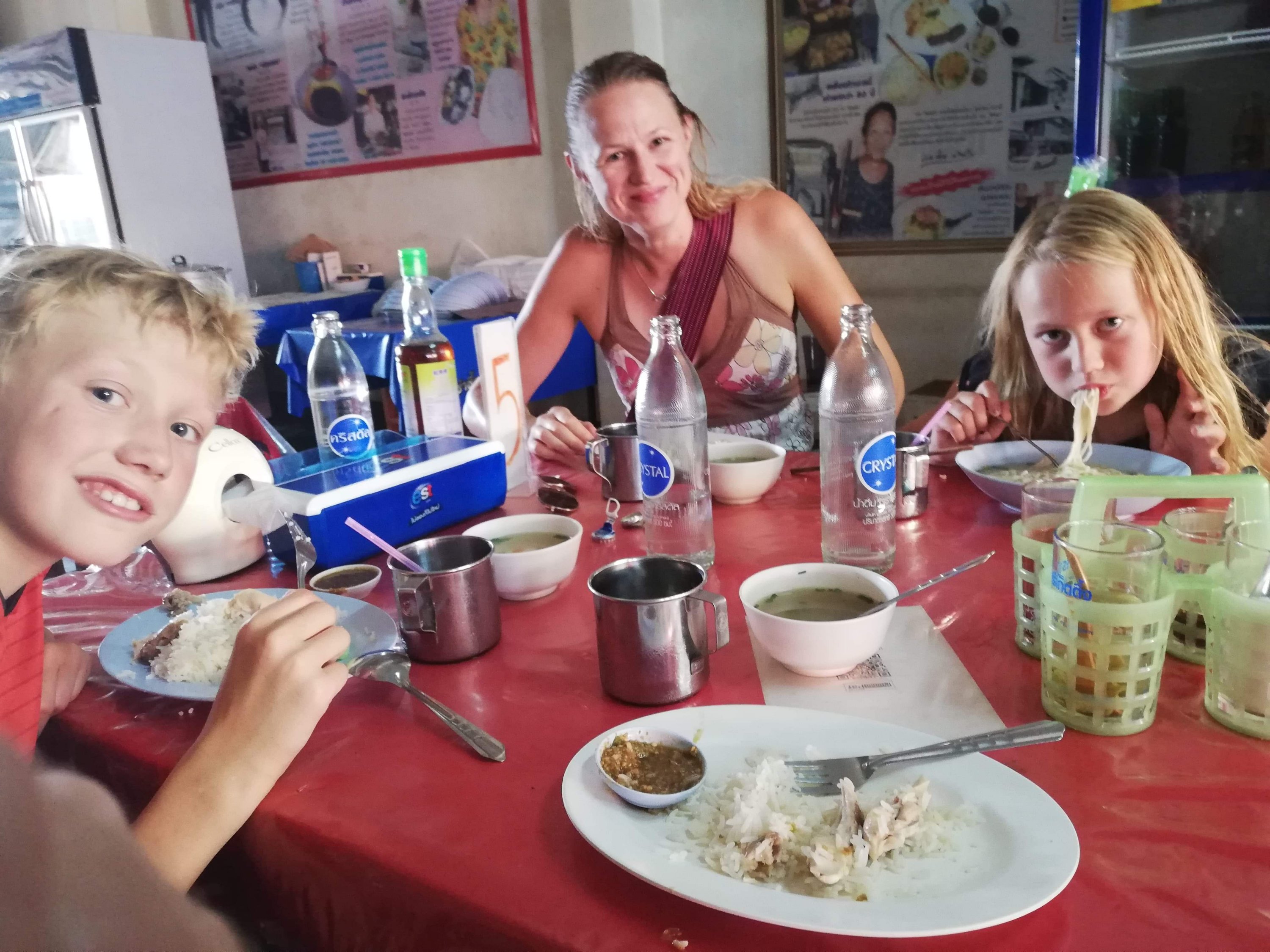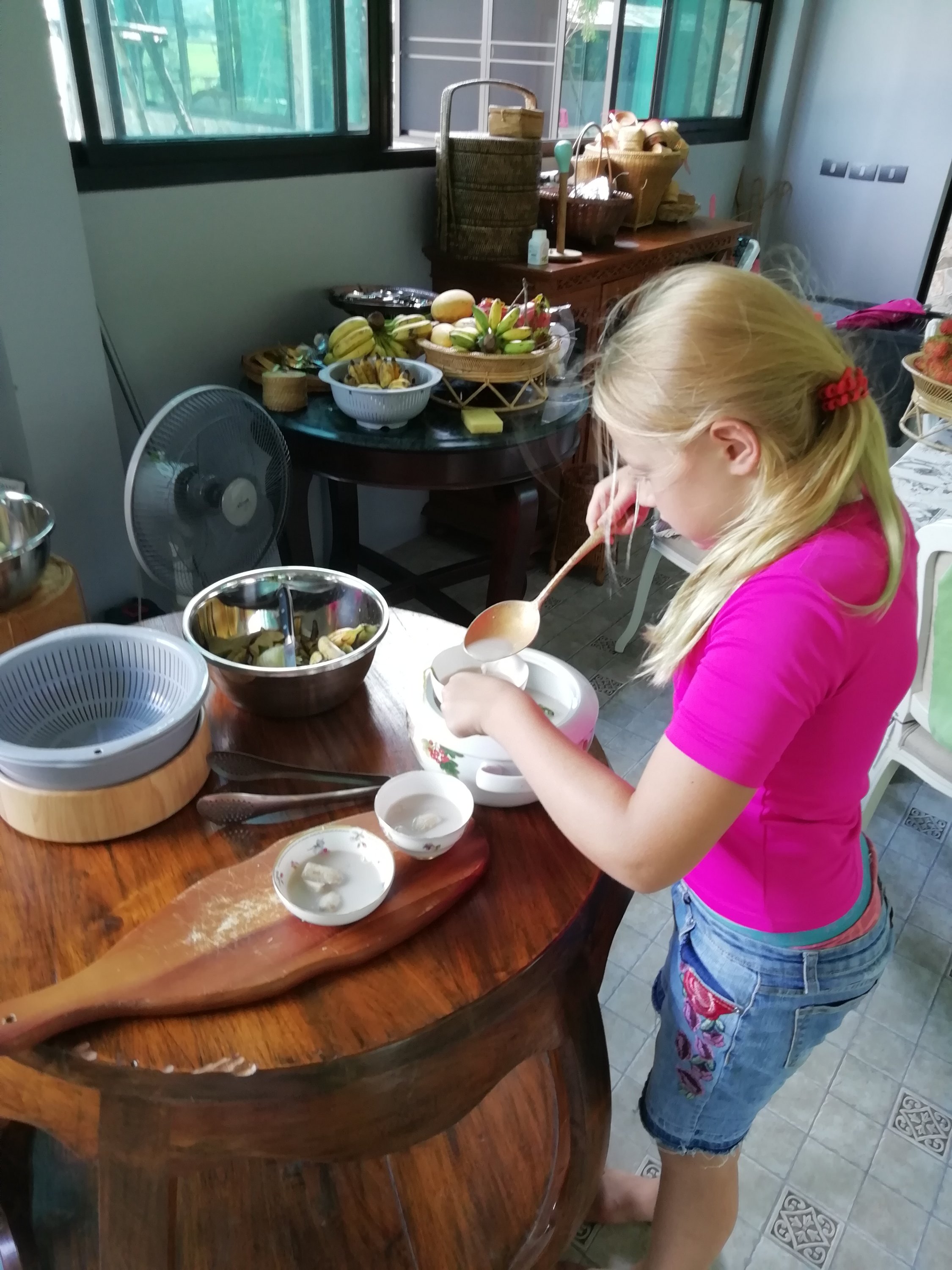 Nå ble det travelt, planen ble at jeg skulle bli igjen, mens Kristin, Audun og Ida skulle ta bussen. Etter en rask tur i by’n for å handle simkort til Kristin og div mat til bussturen slapp tuktuken å bare vente noen minutter. Sekker, unger og kjærring ble kasta bakpå og sendt av gårde, det var da den rare følelsen av å være verdens dårligste familiefar som sender de rundt i Laos på egenhånd kom krypende, men gjort var gjort og jeg stod igjen med en liten sekk, motorsykkel og 20 mil foran meg. Kvelden ble brukt til å tenke masse, samt irritere meg over mine nye romkamerater, 2 Japanesere som ikke prata en døyt engelsk, nekta å ha på klimaanlegg og fyrte opp myggspiraler undere sengene sine. God natt.
