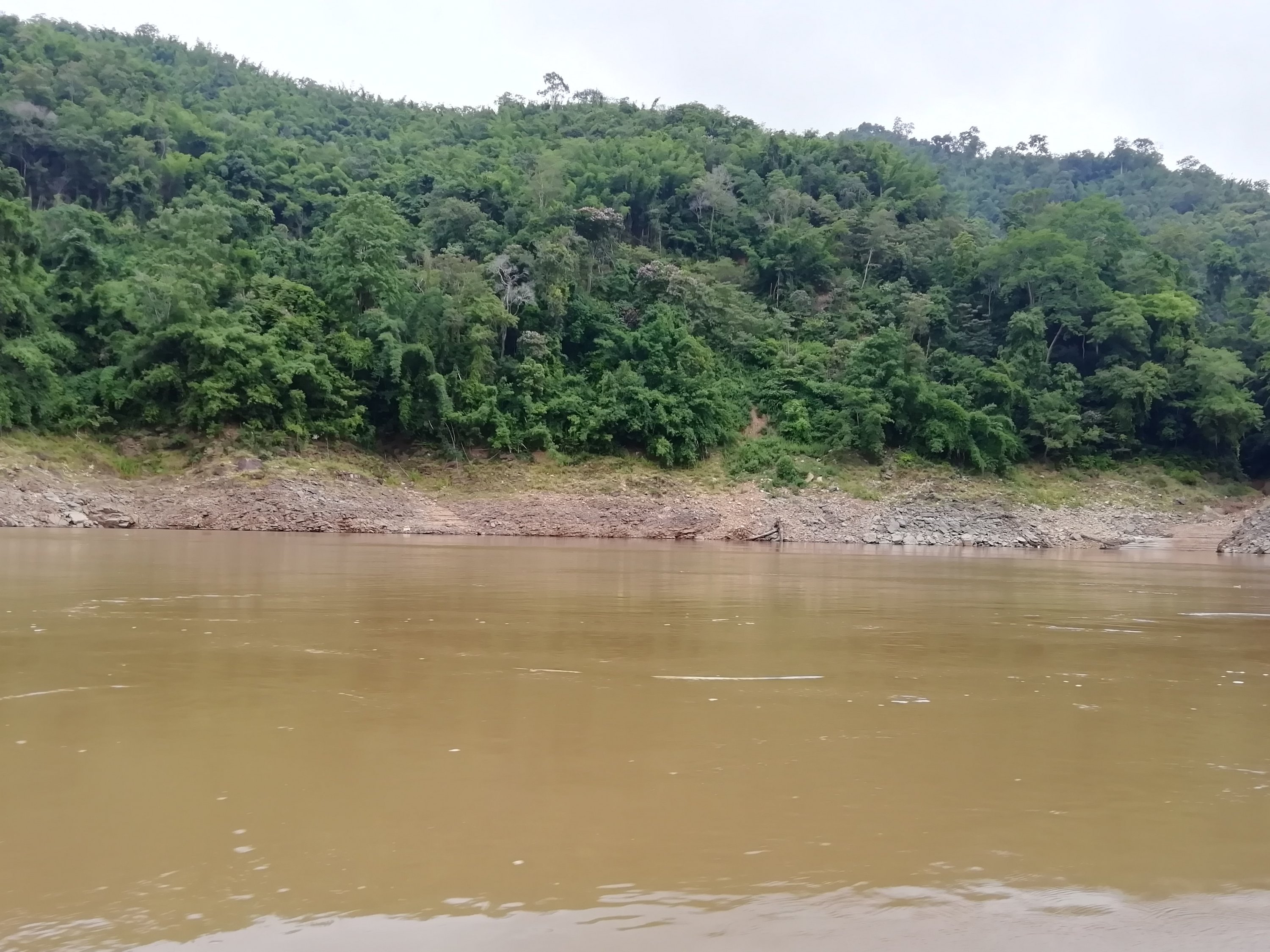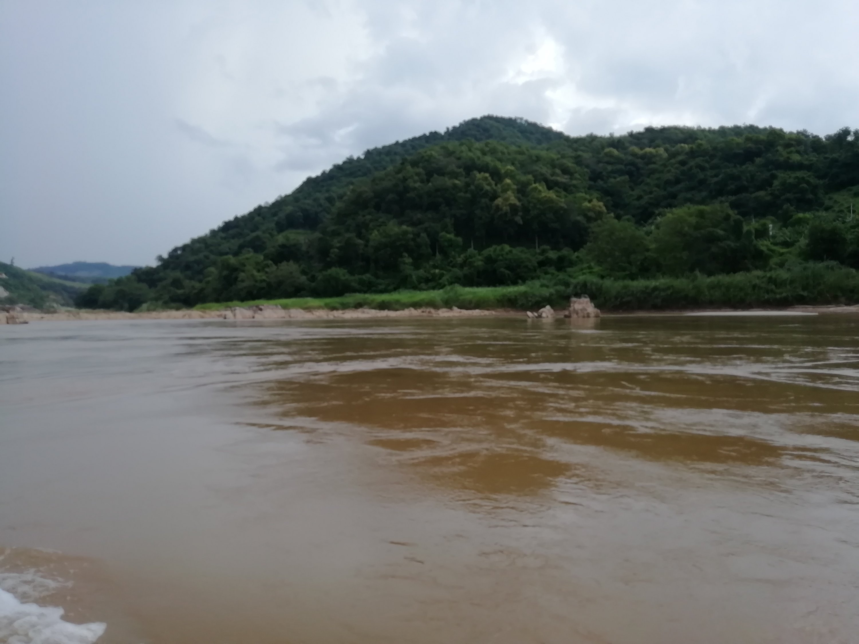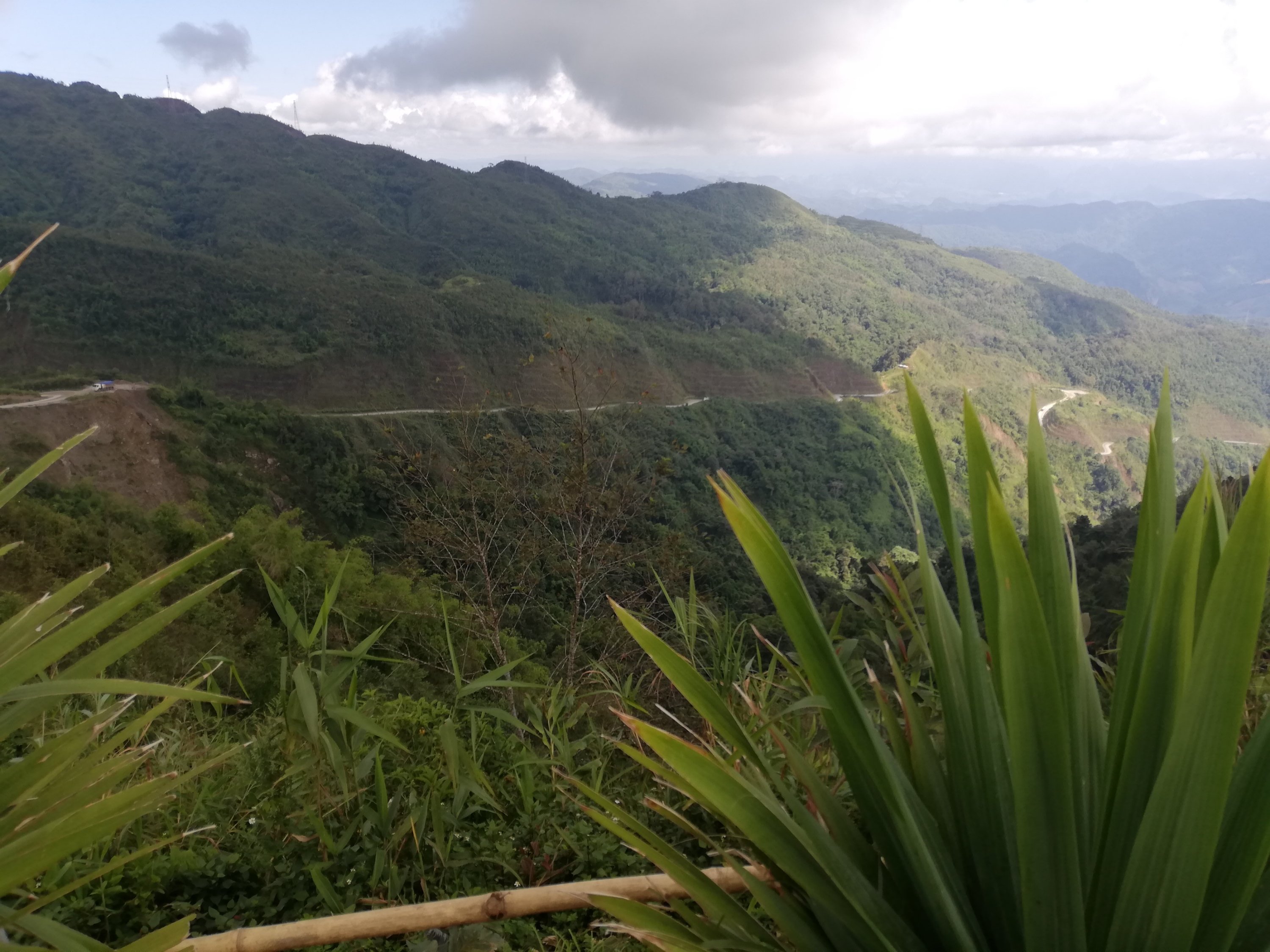 Ut av byen gikk det og jeg og Cobra følte virkelig dette gikk overraskende bra der vi bromma gjennom det nydelige jungel landskapet på små fine, svingete og kuperte veier. Timene gikk og det var som en tidsreise når vi så de lokales levemåte, jo lengre fra byen, jo mer primitivt. Herlige små landsbyer, bygd rundt krystallklare fjellbekker, vinkende barn, kuer og geiter i veien, noen brukte okser til å dra utstyr med, andre hadde avansert til 2 hjuls traktorer, små boder langs veien der de solgte alt mulig rart som de lagde og alle virket så glade. Når vi skulle over fjellet, valgte vi å ta en annen vei enn hovedveien. Høyere og høyere kom vi, regnet kom og det ble så kaldt at jeg vurderte en periode om dette var så lurt men da ga det seg like raskt som det kom, noe jeg nå har erfart er helt normalt. Denne veien var nok stort sett bare lastebiler som brukte, da de få kjøretøyene jeg møtte eller passerte opp de bratte bakkene var lastebiler av kinesisk opphav i 20km i timen som nærmest røykla veien, usikker på euroklasse på disse. Når vi passerte toppen og skulle begynne nedstigningen åpenbarte det seg noe av det fineste landskapet jeg noen gang har sett men samtidig ett kaos på veien.