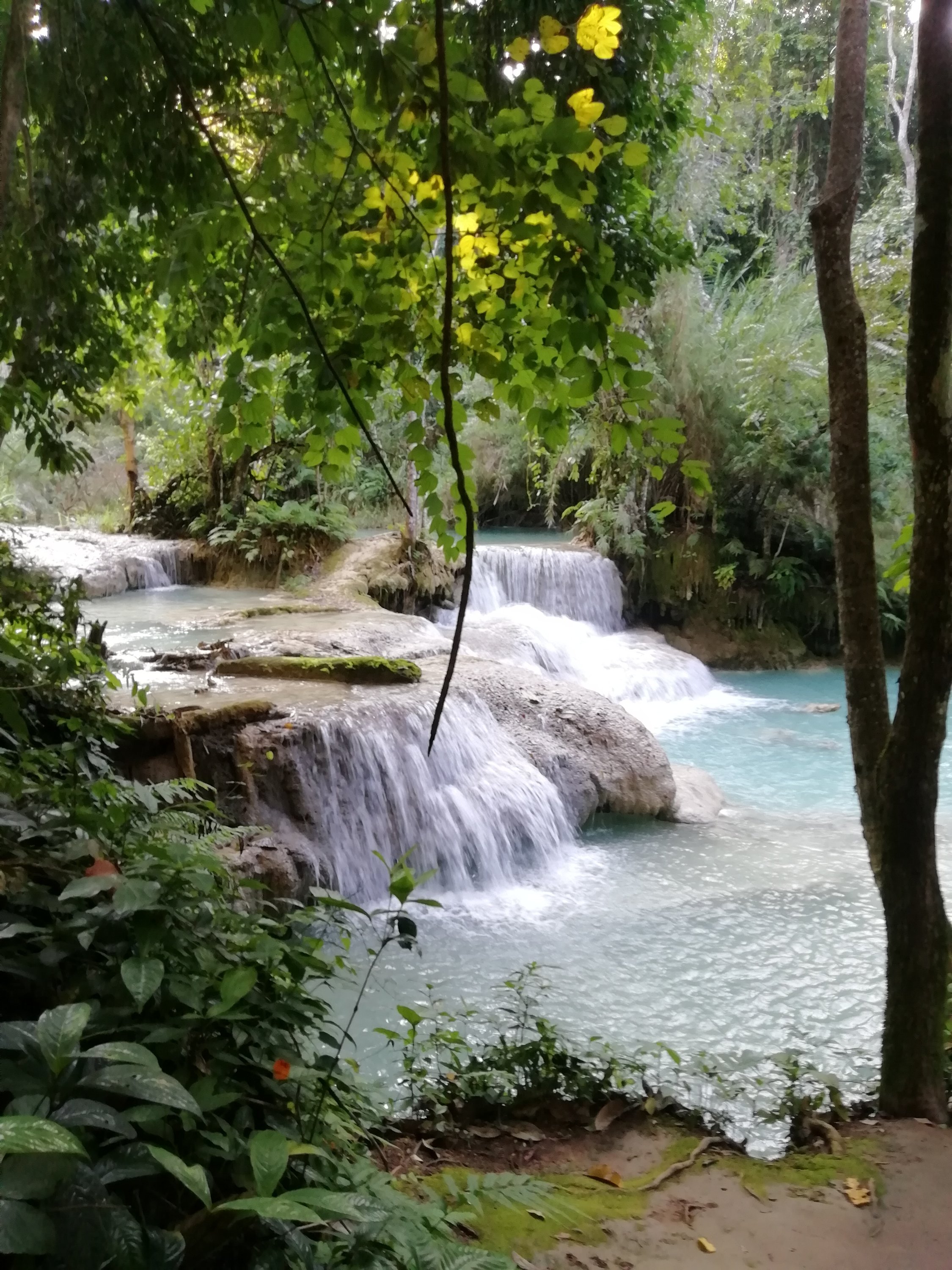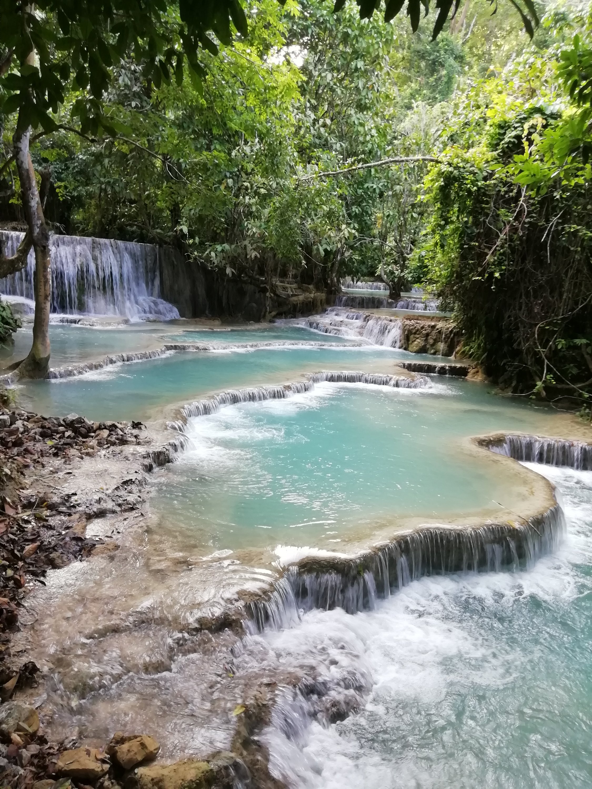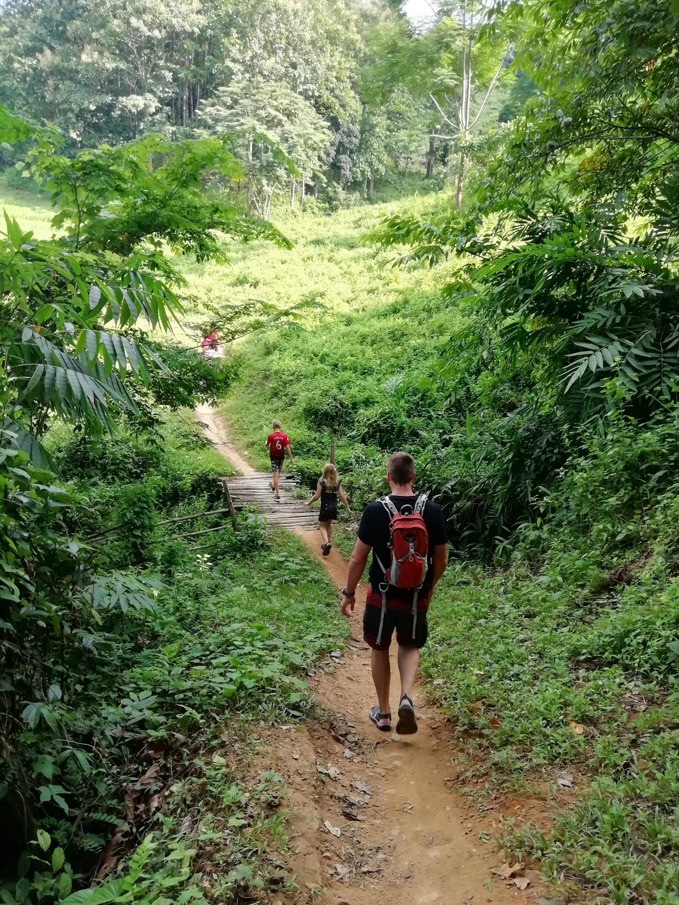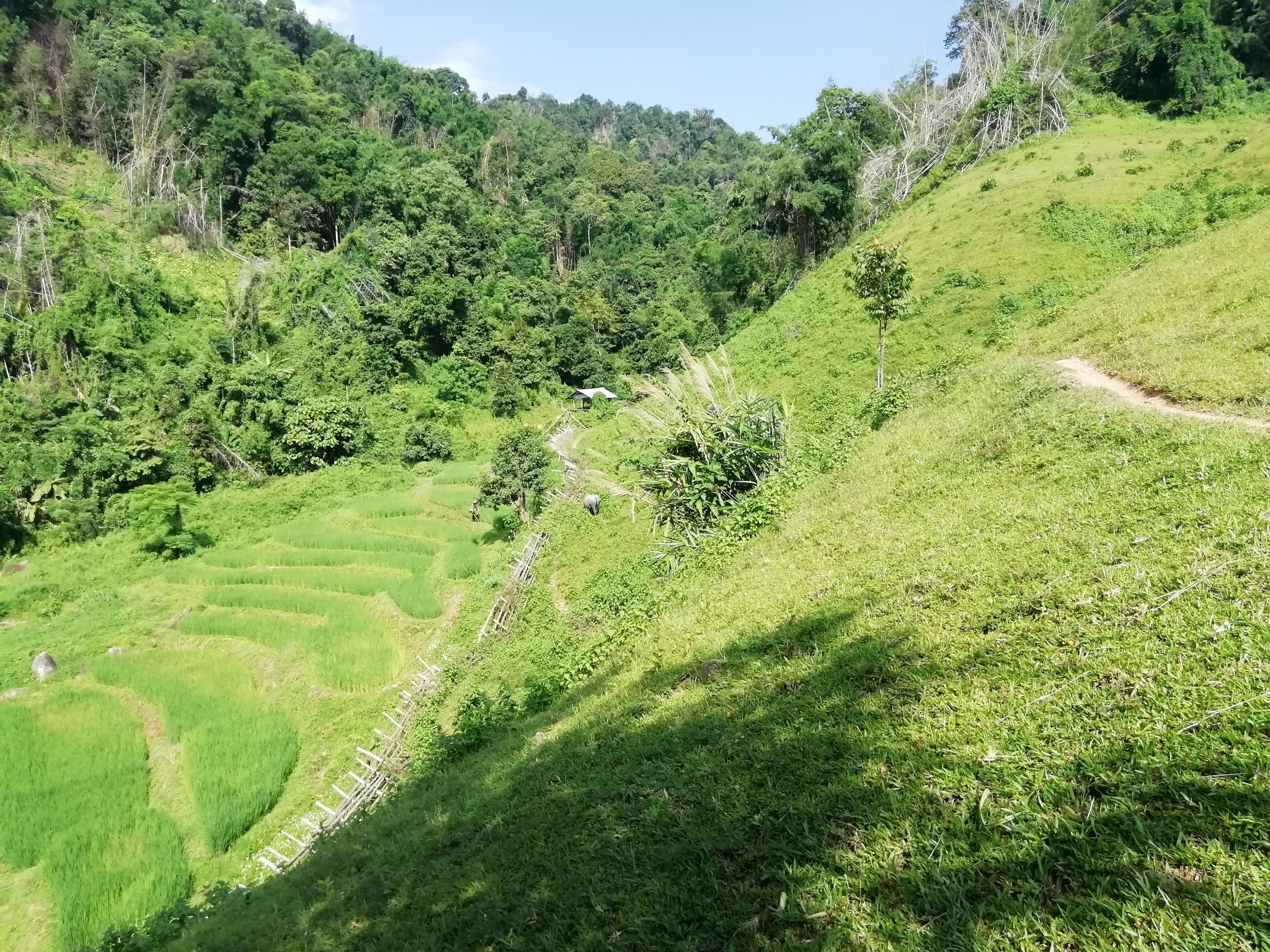 Ut av byen gikk det og jeg og Cobra følte virkelig dette gikk overraskende bra der vi bromma gjennom det nydelige jungel landskapet på små fine, svingete og kuperte veier. Timene gikk og det var som en tidsreise når vi så de lokales levemåte, jo lengre fra byen, jo mer primitivt. Herlige små landsbyer, bygd rundt krystallklare fjellbekker, vinkende barn, kuer og geiter i veien, noen brukte okser til å dra utstyr med, andre hadde avansert til 2 hjuls traktorer, små boder langs veien der de solgte alt mulig rart som de lagde og alle virket så glade. Når vi skulle over fjellet, valgte vi å ta en annen vei enn hovedveien. Høyere og høyere kom vi, regnet kom og det ble så kaldt at jeg vurderte en periode om dette var så lurt men da ga det seg like raskt som det kom, noe jeg nå har erfart er helt normalt. Denne veien var nok stort sett bare lastebiler som brukte, da de få kjøretøyene jeg møtte eller passerte opp de bratte bakkene var lastebiler av kinesisk opphav i 20km i timen som nærmest røykla veien, usikker på euroklasse på disse. Når vi passerte toppen og skulle begynne nedstigningen åpenbarte det seg noe av det fineste landskapet jeg noen gang har sett men samtidig ett kaos på veien.