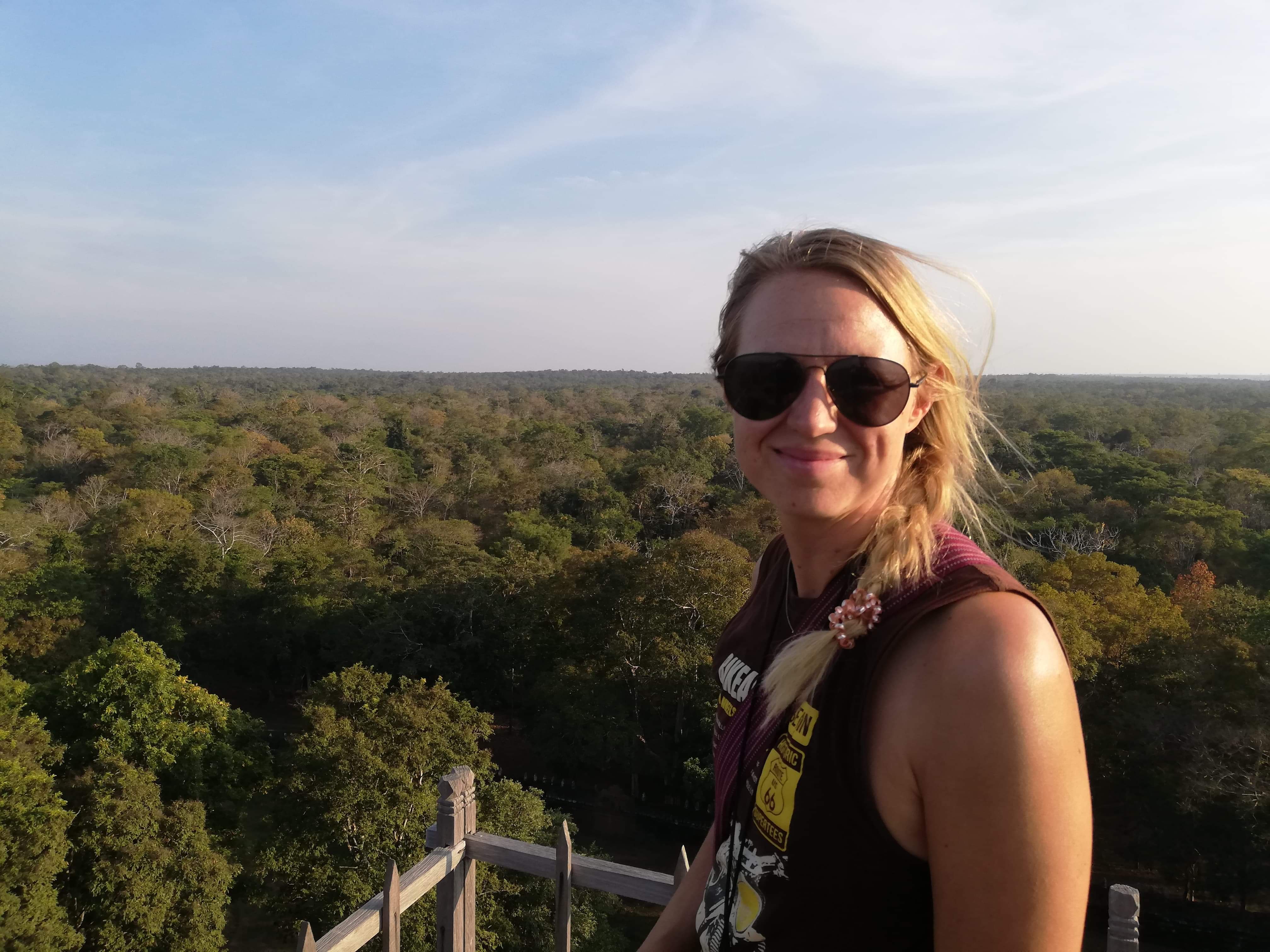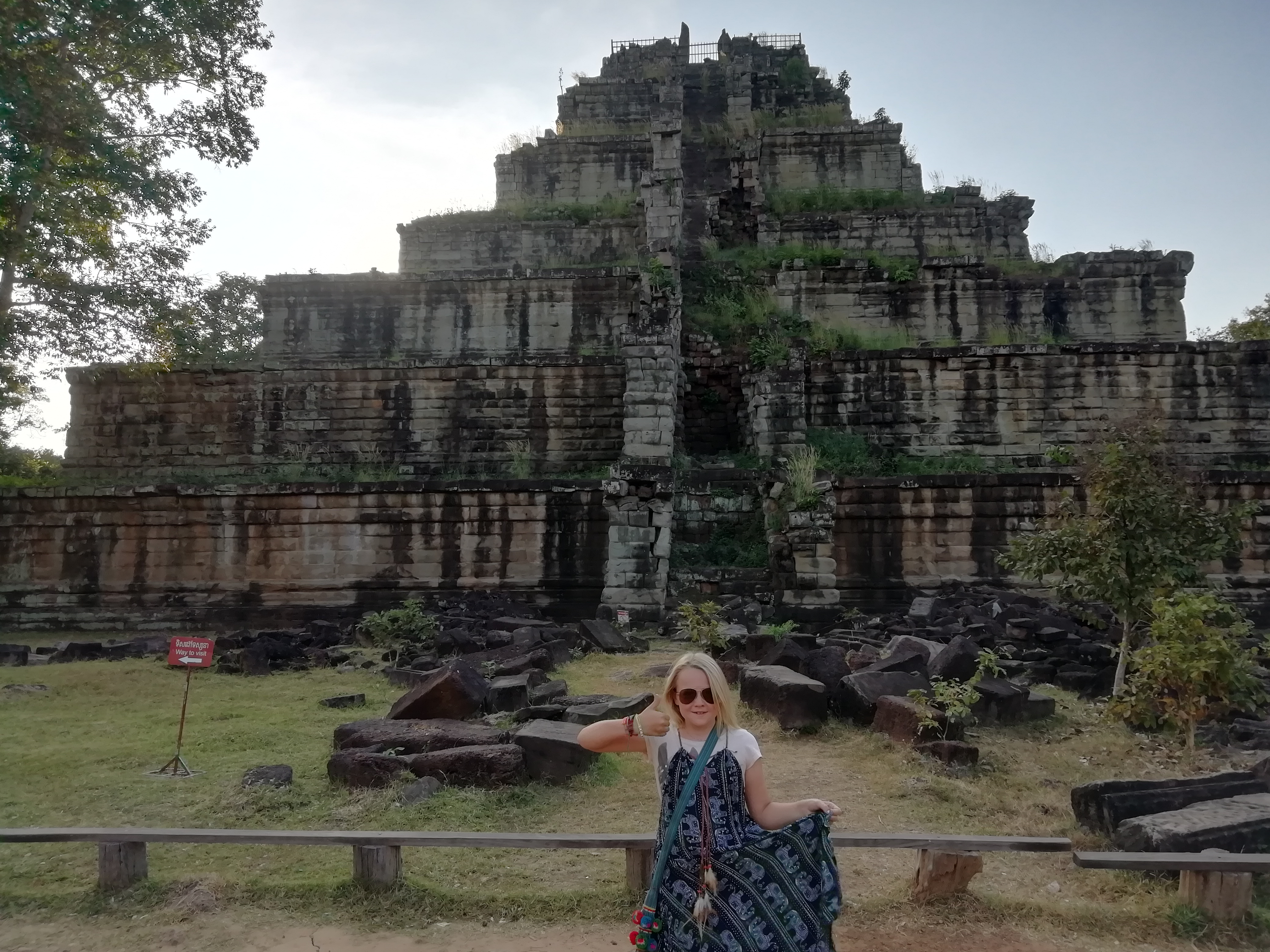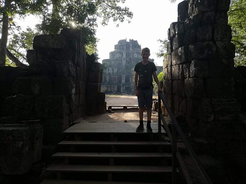 Kambodsja viser seg fra sin beste side i dag også. Deilig frokost fra markedet på terrassen i det fine gjestehuset. Fine veier og hyggelige folk. Stoppet for lunsj i en landsby, deilig mat. Rune sjekker Google og finner ut at vi er rett ved Asias eneste “pyramide”, rester etter Angkor riket. Vi blir enige om at vi sjekker det ut, og leier oss inn på et gjestehus slik at vi kan legge fra oss bagasjen.