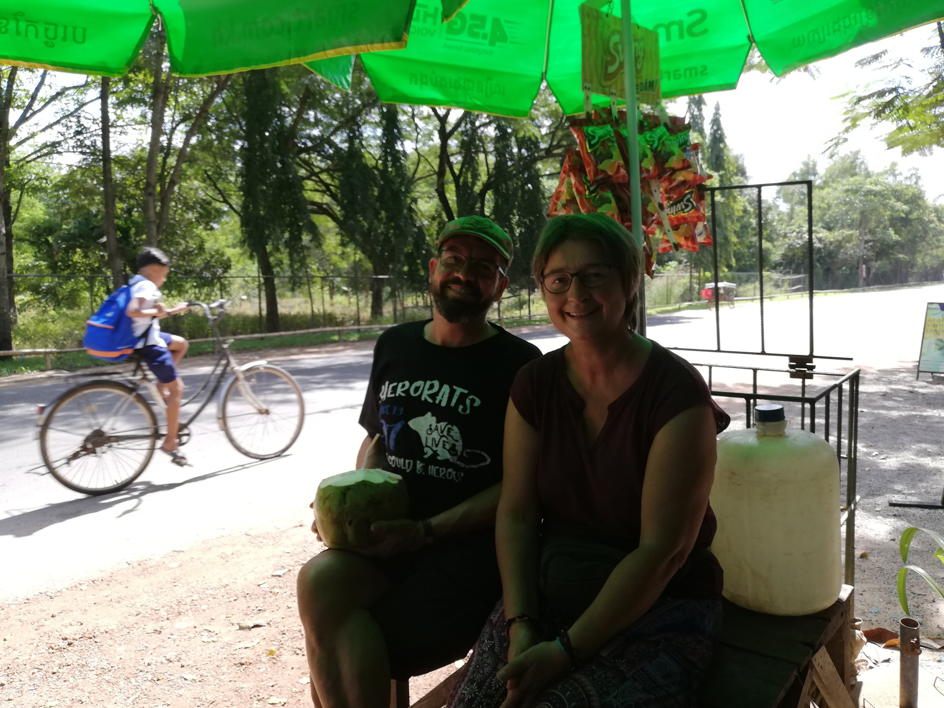 Vi er virkelig fasinert over Khmer folkets vennlighet. Etter å ha fryktet korrupsjon, landeveisrøvere og folk som vil lure deg, så møter vi vinkende trafikkpoliti, smilende og vinkende folk langs veien, folk som gir deg tilbake penger hvis du gir feil (selv om de skjønner at du ikke har peiling).