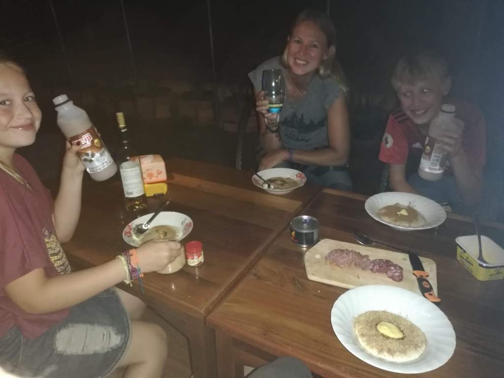 Mulig ingen har hatt smørgrøt på 1. juledag i Siem Reap, men det hadde vi lyst på, så da laget vi det. Vin passer fint til, eller sjokomelk i følge unga. Snowy, Patch og Brownie var også fornøyd med litt smørgrøt🤣