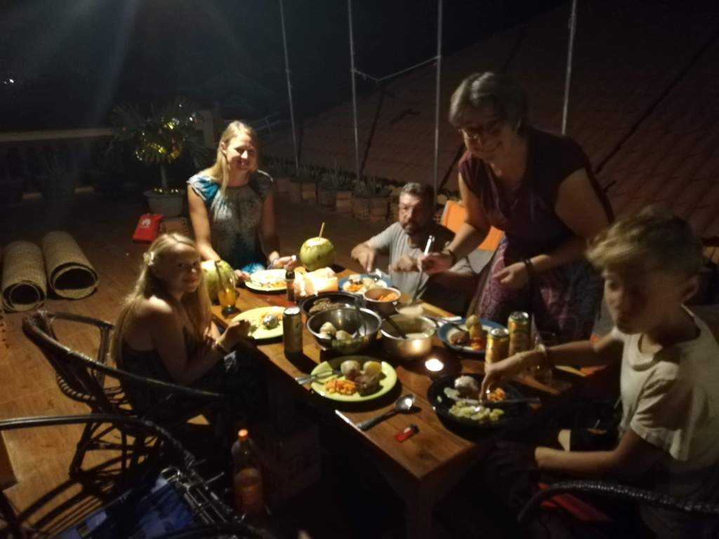 Julaften laget vi stor buffèt sammen med Robert og Barbara, jula handler jo tross alt om å spise ikke sant? Og vel inne i den deilige middagen så kommer V og Milly med mere mat. Man skal ikke tulle med tradisjoner, men en alternativ julemiddag med deilige salater, salami, oster, kjeks, hvitløksbrød, bratwurst, brun saus, poteter og and alá Asia smakte utrolig godt og julestemningen kom selv om treet var ei pynta palme. Det viktigste er å være sammen med de man er glad i, uansett hvor i verden man er.